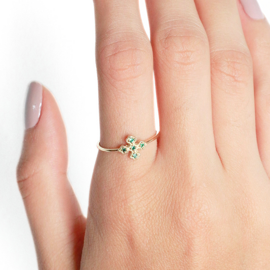 Anillo Churumbela con 9 Esmeraldas en Oro 18 Kilates